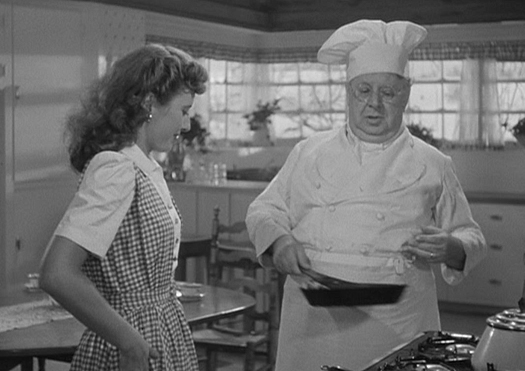Anyway, Greenstreet becomes convinced that the positive press from such a publicity stunt would be immensely beneficial, so he summons Stanwyck to his office to inform his prized employee that this will happen. Greenstreet is a powerful and aggressive man who not only doesn’t take “no” for an answer, but who also just doesn’t listen to others at all, and no matter what, Stanwyck can’t talk herself out of this predicament. Oh, and the kicker: Being that Greenstreet was going to be spending the holiday alone, he decides to invite himself over to witness the supposed culinary artist’s expertise firsthand. She retreats to Sakall’s eatery with her editor (Robert Shayne) who’s also in on her charade, and friend (Reginald Gardiner) who has been trying to get her to marry him for quite some time. Stanwyck and Shayne wallow in self-pity over the fact that their unscrupulous behavior will be discovered and they’ll be summarily fired. Convinced her plight is hopeless, Stanwyck agrees to marry Gardiner, even though she doesn’t love him… but wait, surprise, surprise, Gardiner owns a home on a Connecticut farm?! Sheesh!