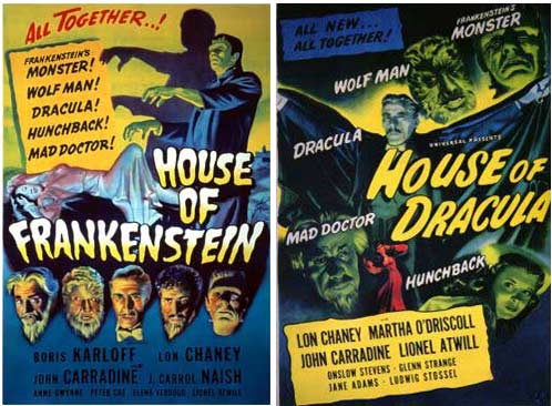Fortunately, neither Lon Chaney’s bad acting nor the silver-tipped cane was able to put an end to the Wolf Man. At least, not when the studio bigwigs demanded a sequel. Thus, in 1943, Lon Chaney Jr., aka Larry Talbot, re-enters the dark, foreboding, “film noir” world when the wolf man actually awakens in his coffin! Realizing he cannot die, he goes in search of a way to end his own life! Eventually, Frankenstein Meets the Wolf Man when Larry arrives at Baron Frankenstein’s castle and revives the Frankenstein Monster (Bela Lugosi). Big mistake! A crazy scientist (Patric Knowles) conducts experiments on the monster when he agrees to help Larry enter the hereafter! Of course, it isn’t long before all heck breaks loose as the monster escapes and Larry turns into the Wolf Man! The ensuing battle between the two supernatural creatures is, to say the least, tremendously entertaining. But it all comes to an apocalyptic end when the townsfolk destroy a dam to flood the castle! So once again we ask: Have we finally seen the last of the Wolf Man?