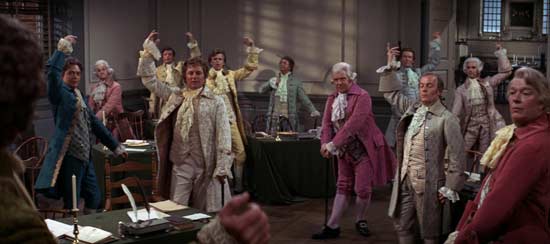 I am a critic of the 1776 Director’s Cut because I feel that the overly-formal and stylized choreography of the “Cool, Cool Considerate Men” number does not mesh very well with the character of the other songs, and also because I believe the film is weakened by the addition of several passages that do not advance the film’s story forward as briskly as the theatrical cut. For example, the Director’s Cut of the film does too much forecasting of the surprising role that Judge Henry Wilson will play at the climax. Whether or not those passages are ripped directly from the play’s libretto is irrelevant to me; in the movie, they do not work, and they lessen the film’s impact.