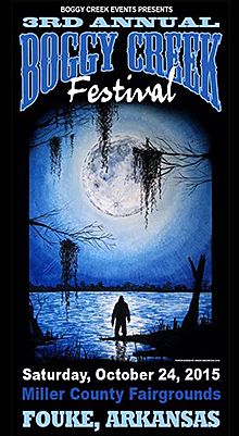 This year, Fouke will host its third annual Boggy Creek Festival on October 23-25. “It’s an opportunity to explore the lure of Bigfoot and discover what new information some prominent Bigfoot field researchers have to share at this three-day gathering nestled in the swamps of Boggy Creek,” said DeAnna O’Malley, chair of the Planning Committee. “Whether you are a skeptic, enthusiast, believer or a true encounter veteran, you don’t want to miss this event. The Boggy Creek Festival features live music, handcrafted arts and crafts, fun games, delicious food, sanctioned BBQ contest, parade, a health & safety expo, kids’ activities and a host of prominent Bigfoot field researchers.” (Click here to visit the festival’s website).