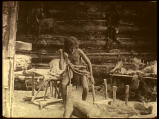 Fast forward some years later, and Tarzan is now played by the husky Elmo Lincoln. He still rules over the apes and seems to have no interest in interacting with his fellow humans. Tarzan continues to occupy the cabin of his parents, which still contains their skeletons. (One wonders why Binns did not bother to bury them.)