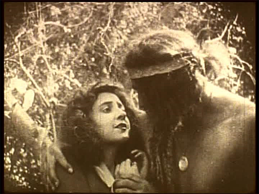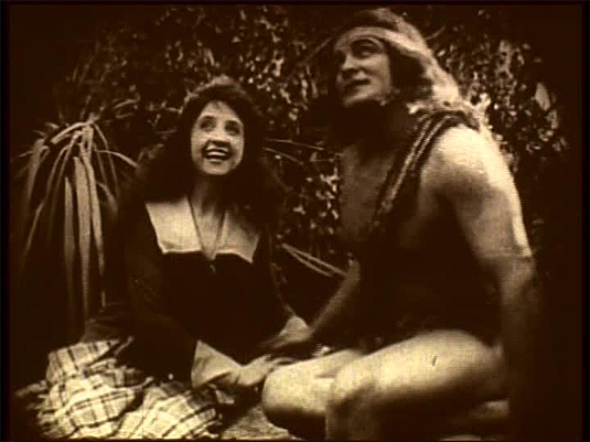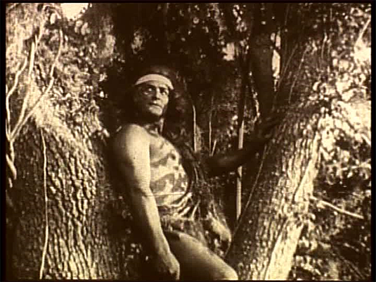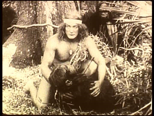 A decade passes and young Tarzan (Gordon Griffith) thinks he’s just one of the apes. The first part of this section is taken up with our nude hero stealing a grass skirt from the local tribe and then setting off to explore the jungle once he is suitably attired. (Why the filmmakers thought it necessary to show in detail how Tarzan came to have clothes is an utter mystery. Most viewers are more than willing to suspend disbelief in this regard.)