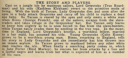 The problem with the English estate subplot is that (spoiler coming) the movie ends with Tarzan and Jane in a jungle clutch and nothing is done about that wicked uncle. If a film establishes a villain and has this villain commit villainy in a villainous manner, it’s not really fair to just leave the audience hanging unless a sequel is expressly promised. (I checked, the jungle clutch ending is how the uncut film finished as well and critics did complain about being left with the unresolved plot threads.)