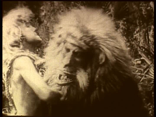 The film moves along at a fierce clip but that’s hardly surprising. You recall that somewhere between two and five reels were cut from the film. So, now we have the big question: what was cut? From magazine accounts, it looks as if there was a parallel plot involving Tarzan’s wicked uncle and his equally wicked wife, who usurped his fortune and title. When Binns returns with news of the boy’s survival, the wicked wife has him committed. It seems that the scenes in England are what got trimmed and the actual Tarzan content was untouched in the recut.