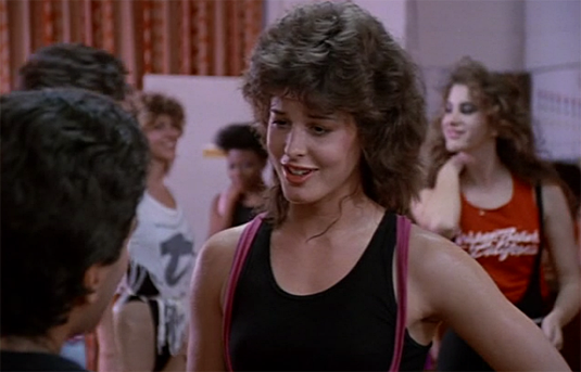 At the heart of the film, though, is Lucinda Dickey. Her career in the movies was short, with only five feature films to her credit. Three of those films, including this one, were released by Cannon in 1984; the other two were Breakin’ and Breakin’ 2: Electric Boogaloo, in which she played Special K. It’s fair to say that she wasn’t exactly a classically trained actress, however she’s more than up to the task of performing the many challenges of her role. At times she has to be sweet, at others she has to be the villain. She gets to do ninja action scenes, aerobics, and her best Linda Blair impression. How many other actresses get to do all that in one movie? Even in the crazier moments of her performance she’s quite compelling. Speaking of the crazy moments – she gets to perform what may be cinema’s most bizarre seduction scene…enticing her man by pouring a can of V8 juice down her neck.