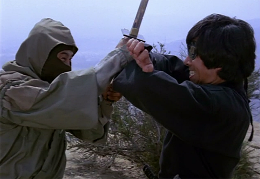 Next thing we know, Christie is mysteriously compelled to visit a cave where she finds the ninja’s clothing. Now – one by one – she starts hunting down the cops who killed the ninja in the first scene. And remember, these are all her cop boyfriend’s buddies. Of course, nobody realizes she’s the one bumping off the cops. Still, with all the strange goings on, Billy takes her to see a mystical Japanese man (played by the great James Hong) who determines that the spirit of the dead ninja has possessed the lovely Christie. The only way to free her from the evil spirit is to have another ninja (Sho Kosugi) do battle with it. Only a ninja can kill a ninja.