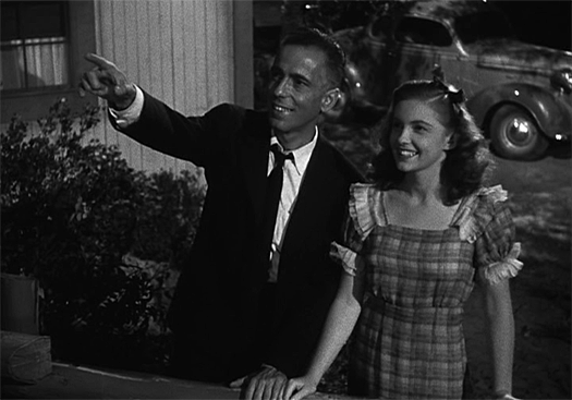 1942 saw Joan as the sister-in-law of embattled college professor Henry Fonda in the screen adaptation of James Thurber and Elliott Nugent’s academic stage comedy The Male Animal, followed by a co-starring turn as the performer-wife of entertainer George M. Cohan (James Cagney) in the patriotic crowd-please Yankee Doodle Dandy. By now Leslie was giving Teresa Wright a run for her money in the “innocent good girl” on-screen sweepstakes, and a change-of-pace role came in 1943’s The Hard Way, a musical/drama where Ida Lupino pushes sister Leslie into a marriage and stage career, only to watch as success turns her sibling into a pleasure-seeking party girl. That same year Leslie got the chance to act and dance opposite Fred Astaire in RKO’s The Sky’s the Limit. She also appeared in such morale-boosting musicals as This Is the Army, Thank Your Lucky Stars, the aforementioned Hollywood Canteen, and Where Do We Go from Here?