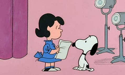 Here’s to Snoopy imitating Lucy during the play rehearsal, licking her on the nose during their would-be fight, and then going “BLEEAAAHH!” (By the way, the reason Snoopy seemed to get most of the action scenes in the show was that the artists found it much easier to animate the beagle than the kids).