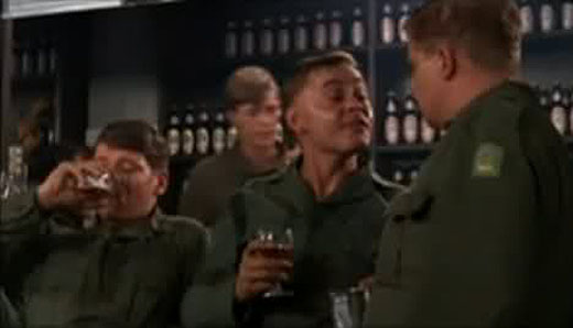Bowie’s feature film debut, an uncredited cameo (second from left) in The Virgin Soldiers (1969).