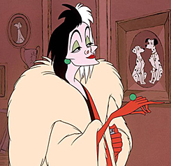 All is peaceful in the Radcliffe home. Pongo and Perdita welcome 15 healthy puppies and everyone, including Nanny (the nanny) is beside themselves with excitement. But the joy lasts only a few moments as Cruella De Vil, a wealthy, highfalutin heiress obsessed with fur who’s an old school friend of Anita’s, shows up offering to buy the puppies. Needless to say Roger refuses her offer. How Cruella and Anita ever became friends is a mystery to me.