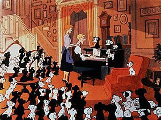 Long story short, a sheep dog named Colonel, who’s leading the force to find the puppies, learns that they’re hidden at Hell House, the abandoned estate of the De Vil family. Time is of the essence, however, as the vile Cruella plans to make a dog skin coat out of the puppies. Aside from the league of dogs and a host of other animals across the land on the alert, Pongo and Perdita also leave London in search of their babies braving the harsh winter elements until they find the Colonel and Hell House. After struggles, close escapes and a terrific chase scene Pongo, Perdita, their 15 babies and another 84 puppies that Cruella had sinister plans for are able to escape. That’s 15+84+Pongo+Perdita = 101 Dalmatians!!